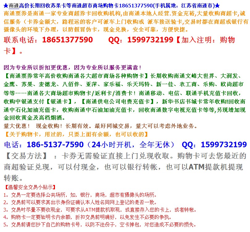 ★南通文峰大世界等商场超市购物卡/电话充值卡收购★ |