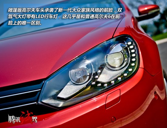 腾讯试驾大众高尔夫敞篷轿车 高尔夫敞篷版车长宽高尺寸分别达到4246mm/1782mm/1423mm,轴距都是2578mm,个头上比高尔夫6略大一点。敞篷版高尔夫车头承袭了新一代大众家族风格的前脸,双氙气大灯带有LED行车灯,这几乎是和普通高尔夫6在前脸上的唯一区别。 高尔夫敞篷轿车的投射式氙气大灯为自动感应式,可以根据光线明暗自动开启,也可以依据道路情况不同采取水平和垂直调节,以方便驾驶者的精准驾驭。整个前大灯轮廓清晰,炯炯有神。