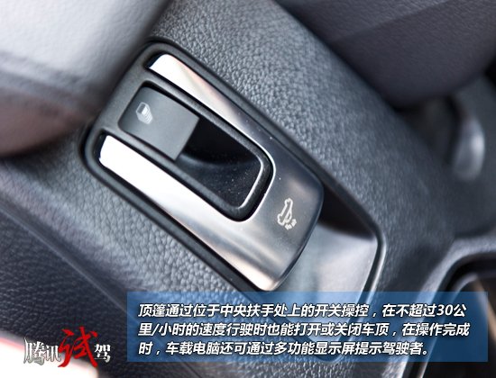 2 u* F6 R5 o: a" b; V腾讯试驾大众高尔夫敞篷轿车 此外,顶篷通过位于中央扶手处上的开关操控,在不超过30公里/小时的速度行驶时也能打开或关闭车顶,在操作完成时,车载电脑还可通过多功能显示屏提示驾驶者。 2 f$ W& }1 K, S- Z M# j `