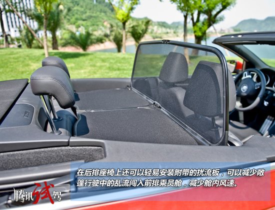 腾讯试驾大众高尔夫敞篷轿车 在后排座椅上还可以轻易安装附带的扰流板,可以减少敞篷行驶中的乱流闯入前排乘员舱,减少舱内风速。 走在郊外的山路上,轻松操作位于中央扶手处的顶棚开关,一个新的世界随即展现在面前,清风微拂,自由使然。