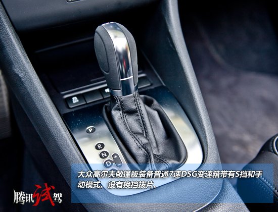 腾讯试驾大众高尔夫敞篷轿车 只是普通7速DSG变速箱带有S挡和手动模式。 4 U m# S) s! `& p