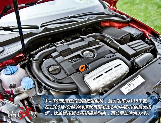 ' z6 y# o4 ?7 E腾讯试驾大众高尔夫敞篷轿车 高尔夫敞篷轿车在优雅的外表下蕴含着强劲的动力,搭载一台1.4 TSI双增压汽油直喷发动机,最大功率为118千瓦,在1500转/分钟的转速就可爆发出240牛顿·米的最大扭矩,比单增压版本扭矩提前到来,在7速DSG变速箱的帮助下,百公里加速为8.4秒。