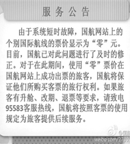 7月13日,《南通 早知道》头条:国航系统故障出售0元机票 官方微博承诺有效 |
