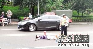 这并不是一场车祸,车是小伙子自己砸的,砸完车,又躺在马路上。