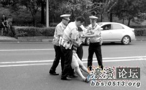 砸车不奏效,他还赌气,跑到马路上,躺下来,不答应不起来。