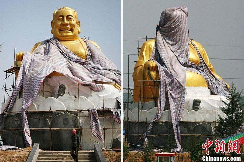 提到佛像,你的脑海中会浮现出什么样的形象呢?宝相庄严、慈眉善目……这一类的词汇都会自然而然地脱口而出。不久前,社会时事评论员田易晨在微博上晒了一张颠覆我们常识的洛阳“佛像”,着实让网友吐槽了一把。据田易晨介绍,这尊“佛像”是洛阳偃师龙华欢乐园最近正在新建的雕塑。网友@嵩山俗人V也介绍说,该欢乐园位于洛偃快速通道,目前正在安装一幢企业家雕塑,貌似弥勒佛。