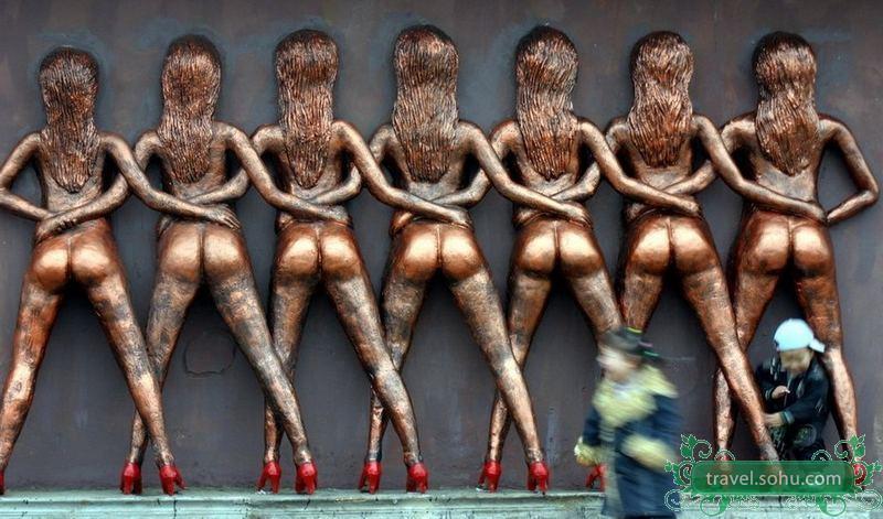广西桂林市中隐路的广源国际社区摆出一个名为《扶老》的雕塑,雕塑是两位一丝不挂的女子抱着一名男子,下面的解释是“左为其妻子,右为其媳妇,寓意一家和 睦,和谐共处,相互扶持,敬老爱老尊老”。有网友将雕塑拍成图片发上论坛和博客,立即引来网友们潮水般的热议,多数网友称雕塑太前卫太雷人,引来各种各样 的指责和非难,也有网友称艺术不可太较真。