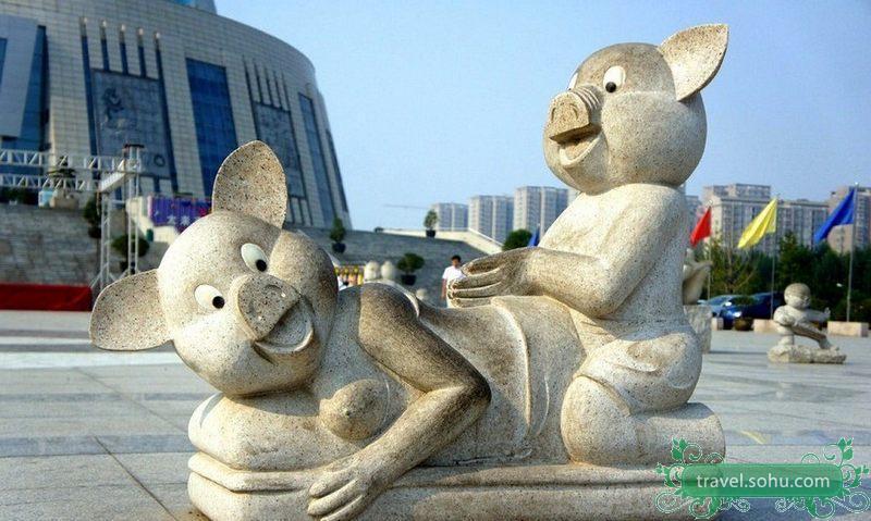 2012年8月22日,河南郑州地标性建筑“中原福塔”的广场前,一尊雕像“火”了。一千个人眼里有一千个哈姆雷特,有网友向心通桥反映这尊雕像的动作太过“流氓”,而设计者认为其实是“小猪在给妈妈捶背”。