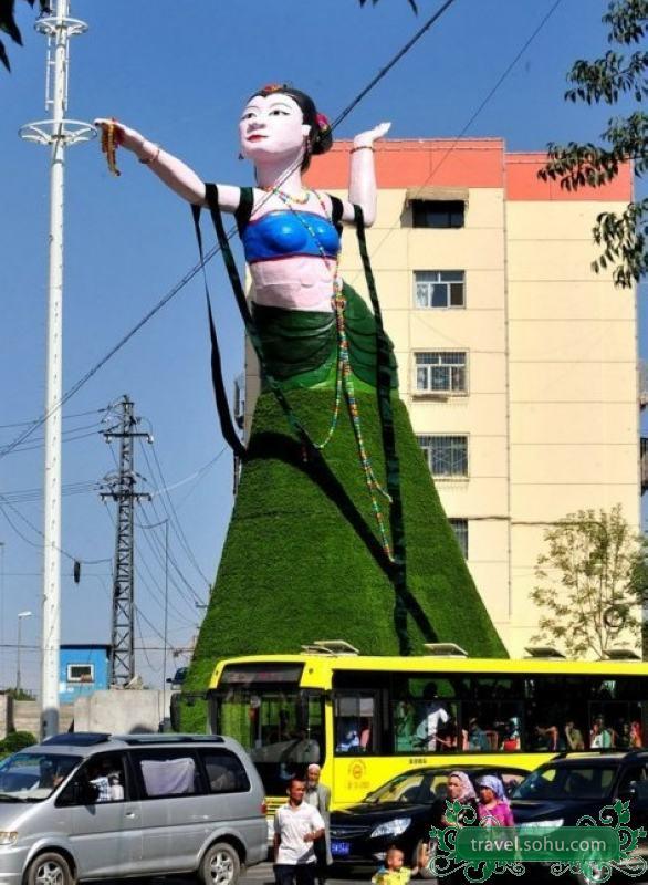 树立在新疆乌鲁木齐市水上乐园旁的“飞天”造型绿色植物花堆,高约18米、重达40多吨,是西北五省区最大的花雕雕塑,耗时2个多月建造而成。近日,这座花雕却在网络与现实中都引起了热议,部分网友认为“飞天”造型不美观,与周围环境也不协调,应该对其美化、甚至应该拆除,而住在花雕附近的居民最关心的是“飞天”是否会带来安全隐患,建造“飞天”的园艺造型公司则表示:“飞天”的安全性能很高。