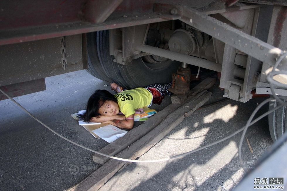 看到这样的场景,我真心想对大卡车司机说:“能不能悠着点儿开”! |