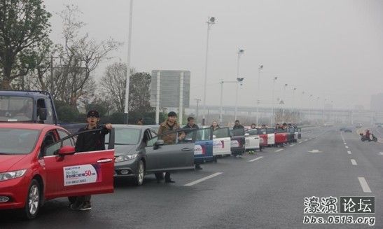 中午吃完午餐之后,我们游览水浒城,无奈天公不作美,雨越下越大,导致许多景点跟活动都临时取消,但期间大家还是看了下传说中妖娆的潘金莲的背影,影视特技表演《铁血丹心》,现场观摩了影视特技的奥秘,还有传统街头艺人精彩的杂耍表演。临近下午三点左右,我们意犹未尽的开车返回南通,红绿灯口,我抓拍了整个车队前行的照片,070军少车贴上有句话很搞笑,“吃饭不吃菜,省钱养太太!”,059月夜也要借用下,“南通思域车友会,和谐群体耐回味!”作为本次无锡自驾游的结束语吧! . d6 K$ g! T/ Z+ M0 J0 s( B