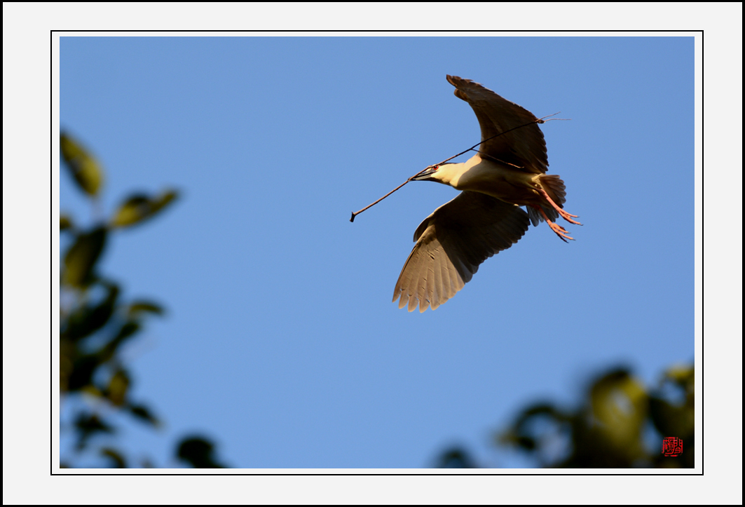面前有棵果树,时不时黄颈凤鹛和锈额斑翅鹛飞来