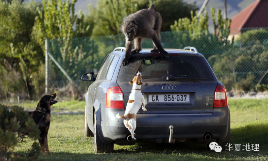 早在上世纪50年代,南非开普半岛的狒狒就开始从人手里抢食物,天长日久,它们已变得愈发猖狂。该地区共有16个豚尾狒狒群,只有一群还遵照古训在野外觅食,其他的团伙更乐意从房子、汽车和垃圾箱里弄吃的。狒狒科研组的贾斯廷·奥里艾宁说,打劫的狒狒会推门拉窗,上房揭瓦。 看护山林的巡逻员们盯着这些匪帮,用彩弹枪把越界的狒狒打回去。它们若与人类接触,两边都没有好果子吃——狒狒又抓又咬,而人类时不时开杀戒——也许还传播疾病。奥里艾宁说,为双方的安乐着想,“狒狒和人还是不要共处的好”。