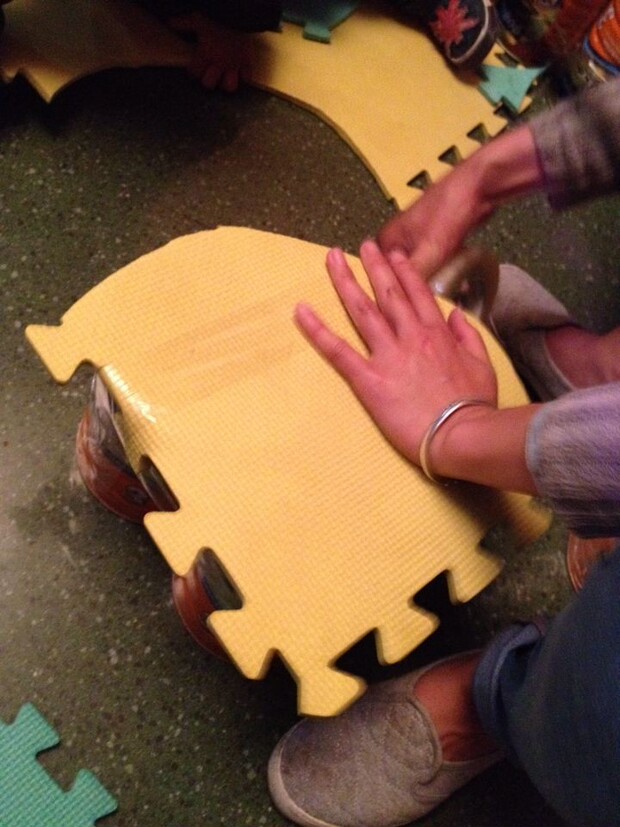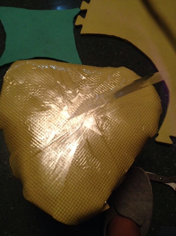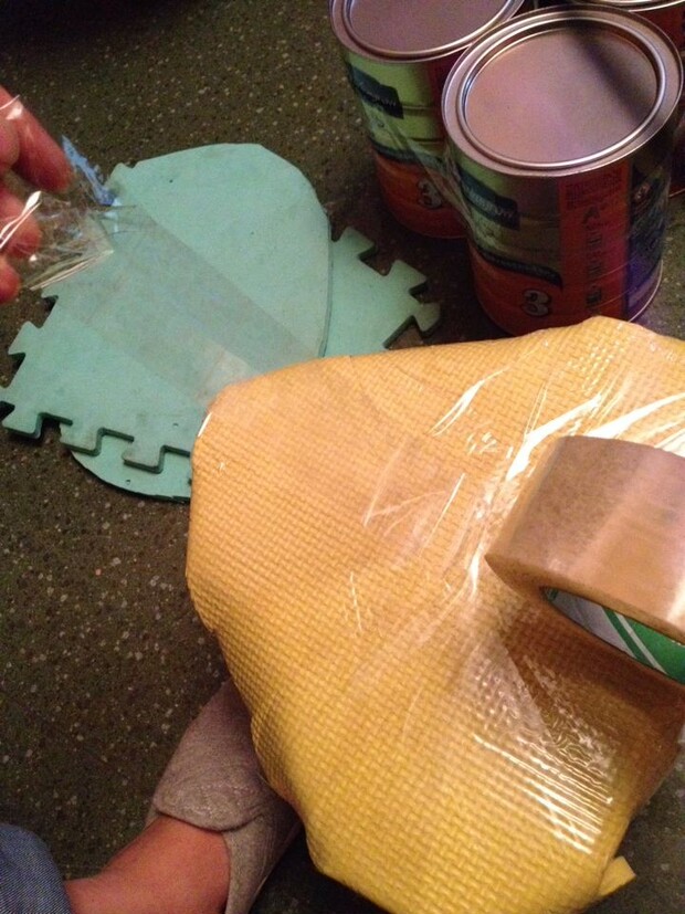 第三部:拿一张泡沫垫,用手指比画出大概大小,用剪刀剪下。 [url=][/url]