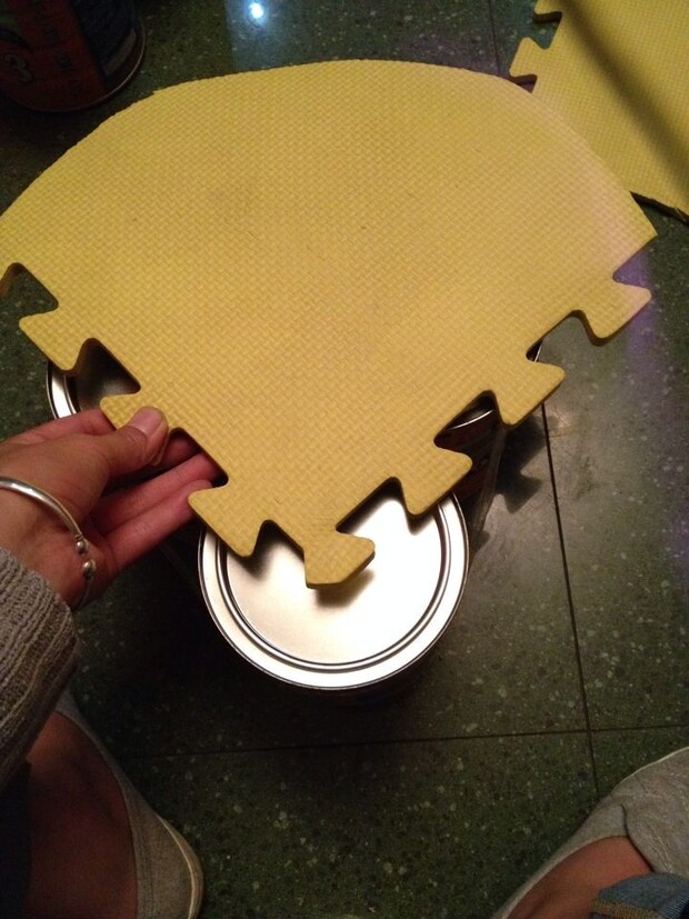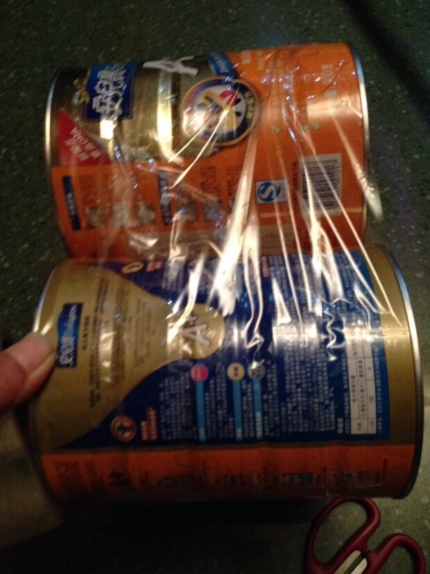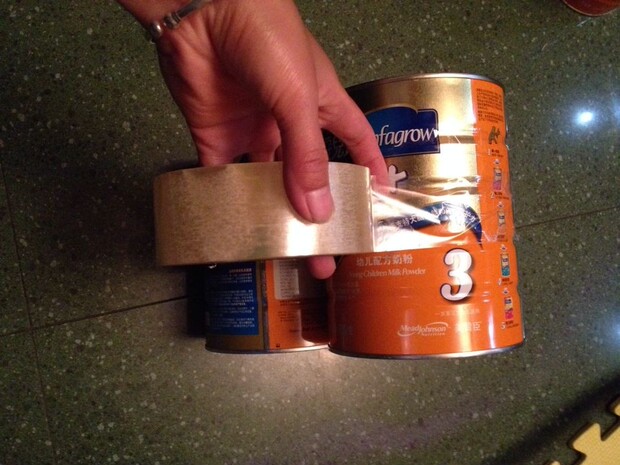 第四部:把剪下的泡沫垫放在奶粉罐上面,用胶带固定,一定要从底部拉出,粘满表面为宜。 [url=][/url]