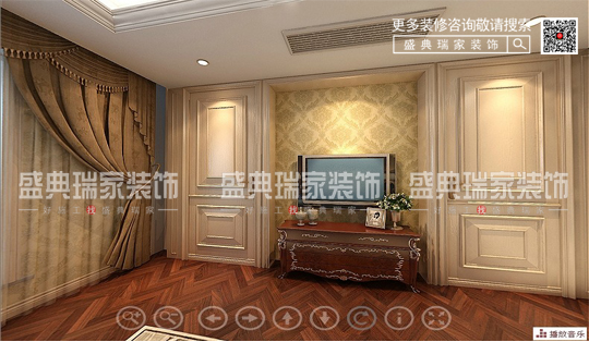本案突出文化主题,透过设计师的设计来凸显欧式的纯然风情及深厚的文化底蕴,体现出文化元素在家装设计中的实用与精致。 客厅的玻璃窗带来了良好的采光,落地的窗帘很是气派。布艺沙发组合有着丝绒的质感以及流畅的木质曲线,将传统欧式家居的奢华与现代家居的实用性完美地结合。 灯饰设计具有西方风情的造型,比如壁灯,在整体明快、简约、单纯的房屋空间里,传承着西方文化底蕴的壁灯静静泛着影影绰绰的灯光,朦胧、浪漫之感油然而生。