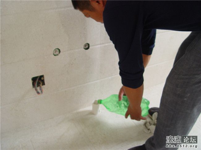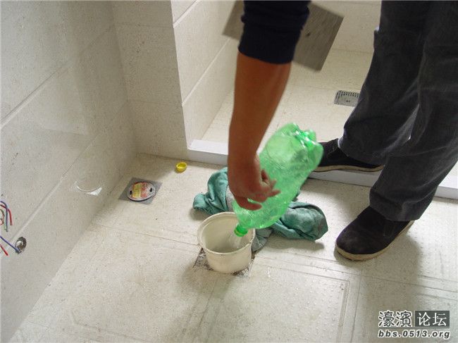一开始,装修师傅开始检查地漏情况,查看是否有漏水的地方。8 ]3 m, n7 }+ y5 l