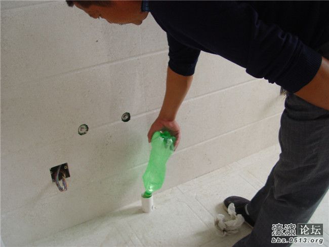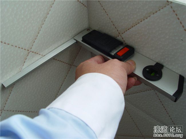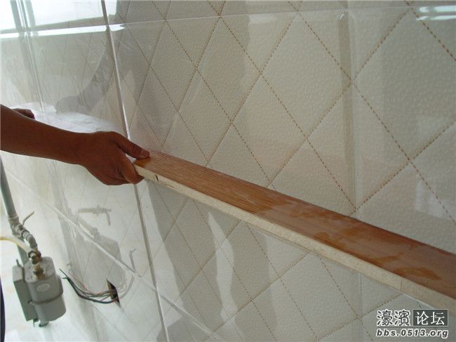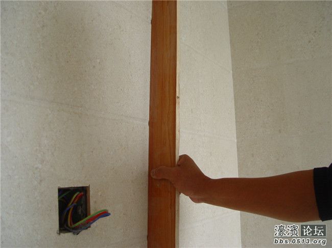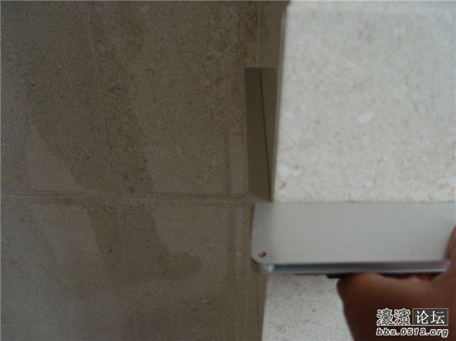 . k( ~& r4 y0 L2 Y这是装修师傅检验墙壁贴砖以后是否还是垂直,这也是一个让人称赞的细节,虽然都是些小细节,但作为业主,作为一个就在验收现场的业主来说,这是值得让我们放心的。