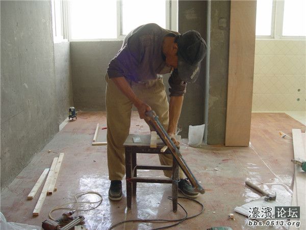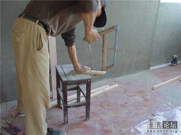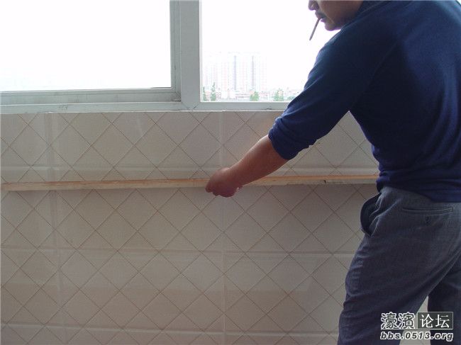 ) X! I/ X- I% ~8 `- g8 r. o6 p- K2 w这是装修师傅用木条检测阳台、地面和墙壁。8 ], f5 v& \: K' c