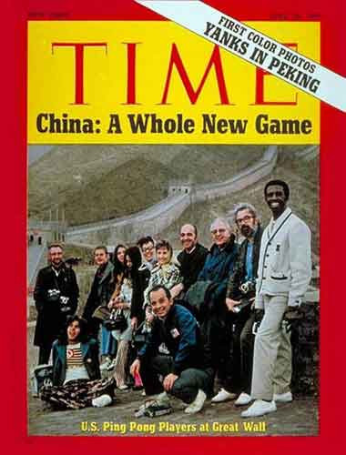 7 D( q8 o2 p" w) D, [: ]△1971年4月26日美国乒乓球运动员在长城的合影。这也是中国展开乒乓外交,与美国接近的一个策略。