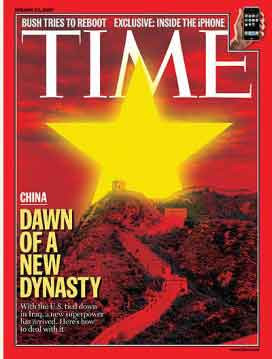 5 ?5 q! u$ U" E. r" d* n% L7 A△2007年1月22日出版的美国《时代周刊》封面,文内标题用的则是《中国世纪》。# I. C B! e8 ~2 x( W% w' x