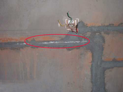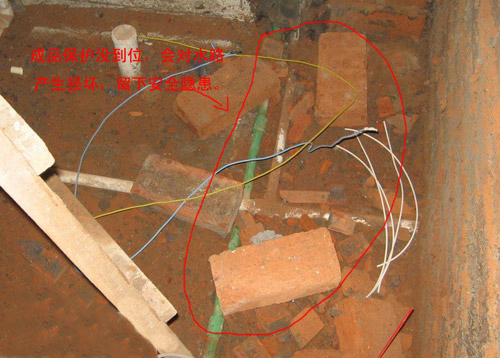 线管没有彻底敷设在墙内,这样既影响线管的使用寿命也影响瓷砖的使用寿命!