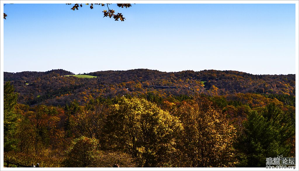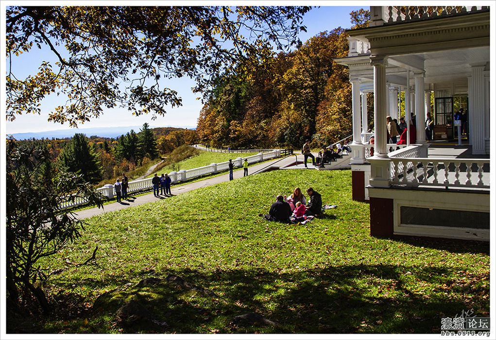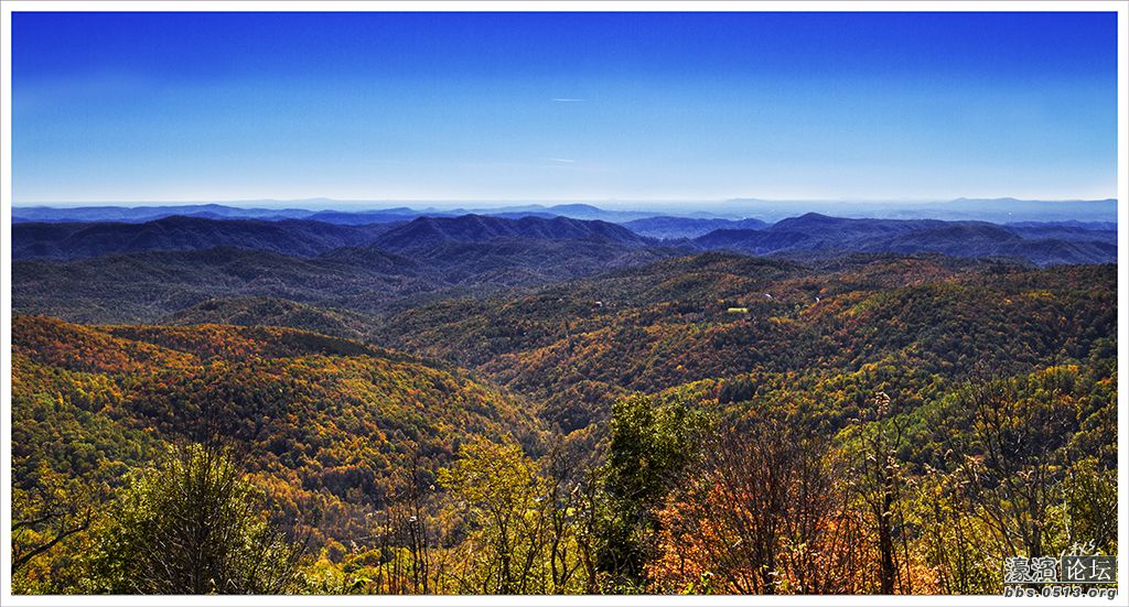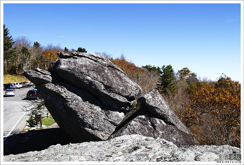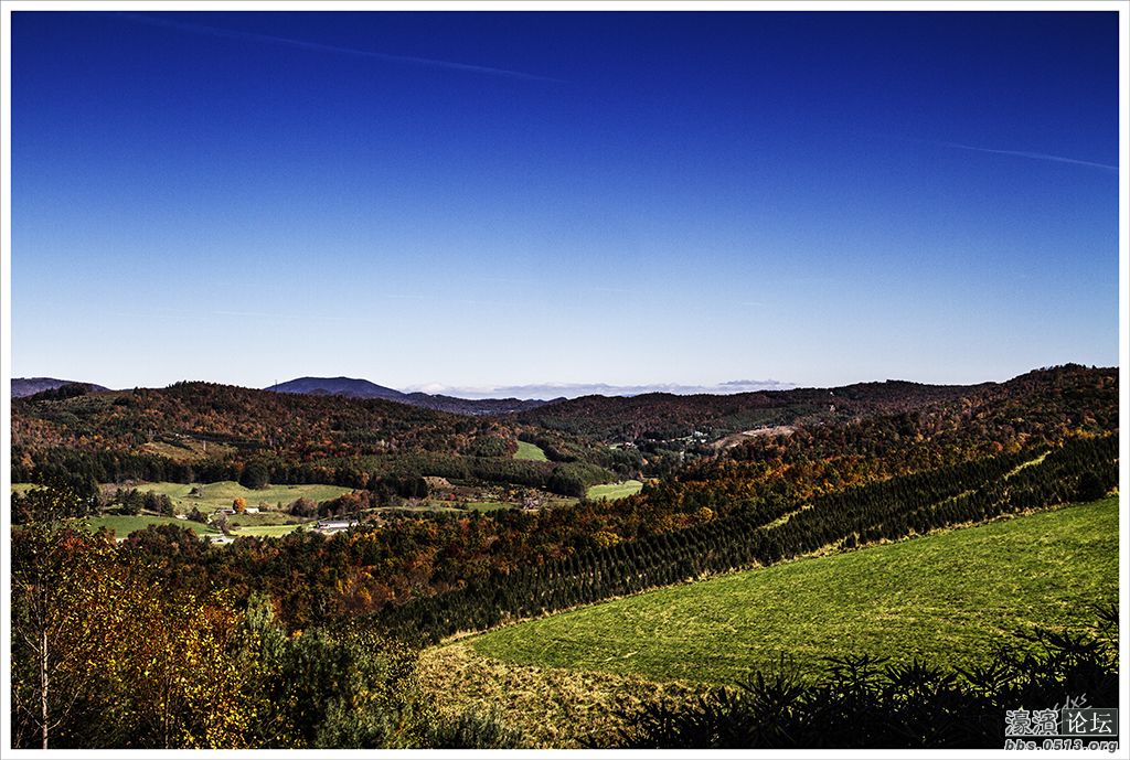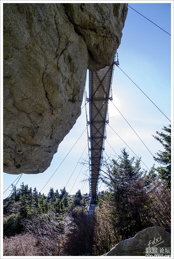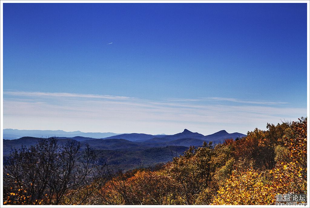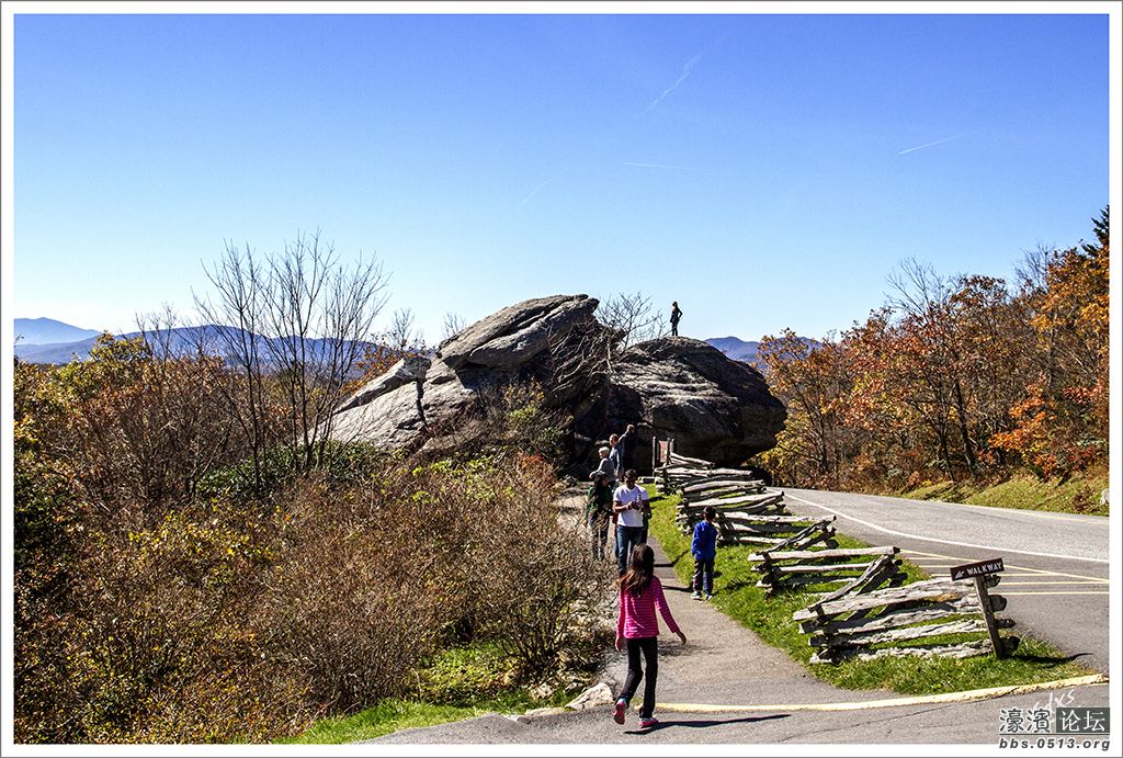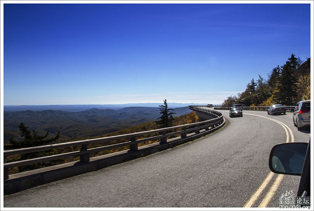 6 ?4 q* Z5 R7 R% B* ]* K老爷爷山(GrandfatherMountain)赏秋 秋天是北卡罗莱纳州最美的季节。每年的10月中至11月初是最佳赏秋时间。我们经不住美丽秋色的诱惑,星期天(10.19.)上午,我们驱车前往离我们居住地大约有四个多小时的车程的老爷爷山(Grandfather Mountain)赏秋。 汽车下了高速公路,进入山区,行驶在全美最知名的景观公路——蓝岭公路(Blue Ridge Parkway)上,窗外五彩缤纷,层林尽染,秋色迷人。可以毫不夸张地说,如果摄影技术还算可以的话,拿起照相机随手一拍,就是一张相当不错的明信片。 老爷爷山(GrandfatherMountain)是这儿众多山峰中最高的一座,这儿经常有獭、熊及美洲豹等稀有野生动物出没。据说运气好的话也能在公路两旁也看到它们的身影,但我们没那么幸运。 这山上还设有11条健行山道,有适合初学者的简单步行山道,也有高难度的攀岩山道,真是应有尽有。 考虑到我们的年龄、身体和时间等原因,我们没有选择从山脚步行上山,而是驱车直奔山上最高的停车场。 停车场旁有个小小自然博物馆,在这儿看到了在公路两旁没能碰到的水獭、黑熊、美洲豹和白头鹰等野生动物,也算是弥补了一项缺憾吧。 离开博物馆我们来到了最有名气的swinging bridge。这是一座架设在两个山头之间的吊桥。从下面看,桥很高很高,像是悬在半空中的一座独木桥,走在桥上,摇晃得挺厉害,风很大,有一种一不小心就会被刮下桥去的感觉,要过桥没有点勇气还真是不行。 在这儿居高临下,视野开阔,举头四顾,漫山红叶,在湛蓝的天空映衬下甚是壮观。无限风光在险峰,一种冲动迫使我一次次的按下快门,想留下这难得一见的壮美景色。 前一段时间比较忙,照片未能及时整理出来与朋友们分享,希望大家能喜欢。 有些片子由于受当时条件的限制,只能在行驶的汽车里隔着车窗玻璃拍,效果不理想。当然更主要是本人水平欠佳,照片远不能反映真实场景。还望朋友们多提意见建议,多多指导!