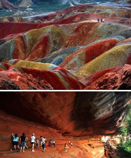 伊斯奇瓜拉斯托/塔兰穆帕亚自然公园地处阿根廷中部的沙漠地带,其中湖泊和沼泽中有大量的植物化石,一部分已经成为煤层,其他化石则完好的保留了植物原本的形状、脉络和纹理,在其他地区这种保存形式并不多见。在沉积物中最常见的是火山岩灰层,伊斯奇瓜拉斯托土地干燥,表面崎岖不平,人们称之为“月亮谷”。 6、丹霞地貌(中国)