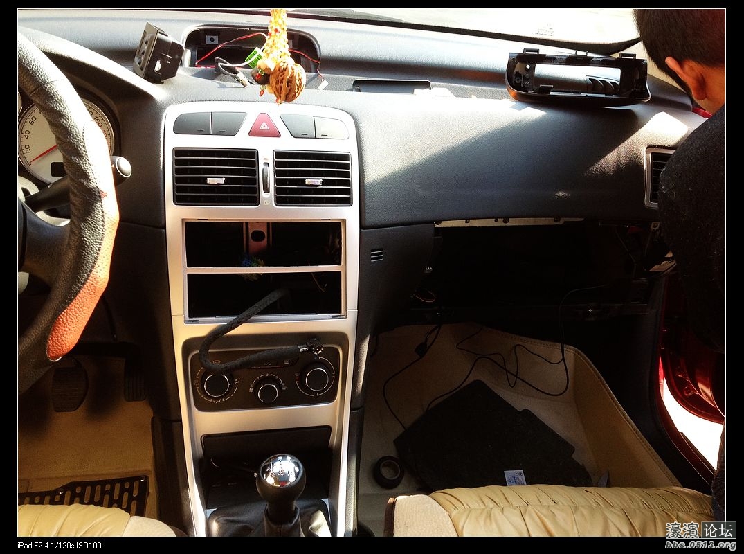 车是新买的标致307,刚上牌。女车主考虑到装个导航倒车影像一体机方便点,于是果断下手!买车一定要买裸车哦!4S店所谓的原装导航其实都是自己后加装的,一是价格贵二是机器差三是每次地图升级还要再收费最起码200元一次。所以这位明智的车主果断没有上当!9 a& i% I* {1 K+ s. C4 g