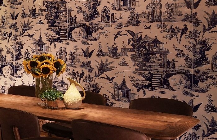 9浓浓中国风的意大利餐厅瓷器是画龙点睛之笔。冷色调均衡餐厅的其它暖色。图案描述的是中国,却源于清明时期外国人对中国的绘画。复杂的描述体,或许只有西方人才会选择这样纹样的陶瓷表达 中国。