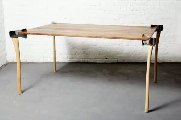 ( E# o$ ^ x+ _[size=1em]斧头做成的霸气创意桌子