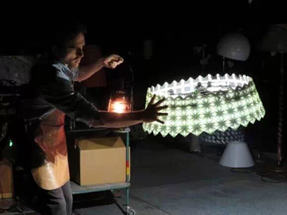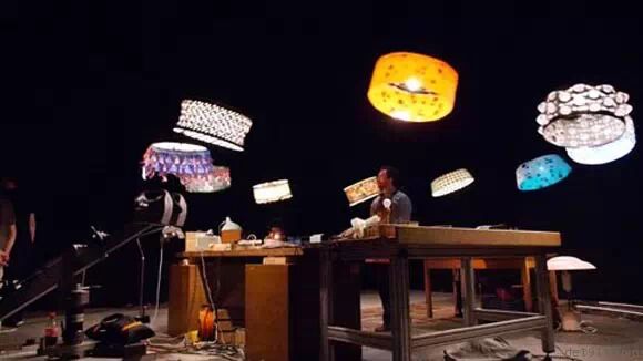 在灯罩中安装了四旋翼飞行器,设计师在里面又安装了动作捕捉仪,感应人的肢体动作。 / |+ C- g! |: g2 U8 F2 c