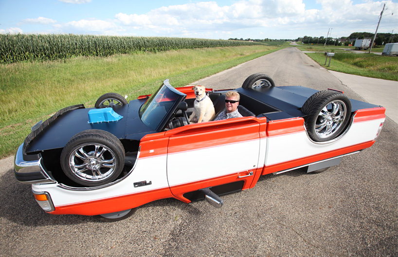 % d2 N' P+ c( U4 r$ R[size=1em]一辆可驾驶的翻倒 敞篷轿车