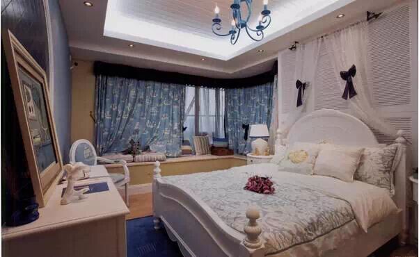 , B8 p* G5 Z5 m9 p$ ?2地中海风格婚房将海洋元素应用到家居设计中,自然而柔和的色彩,给人以自然而浪漫的感觉。