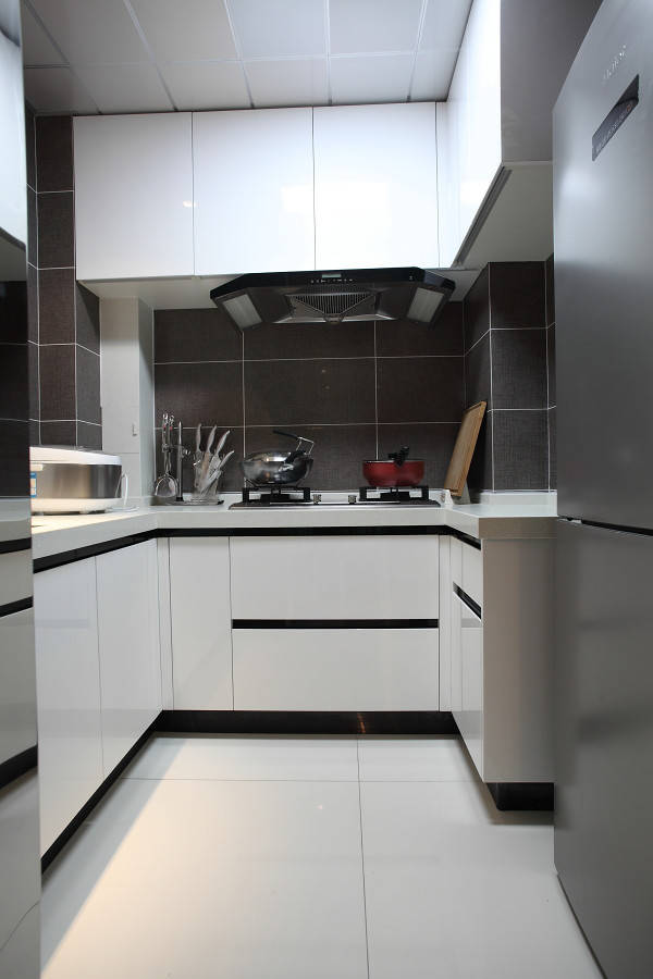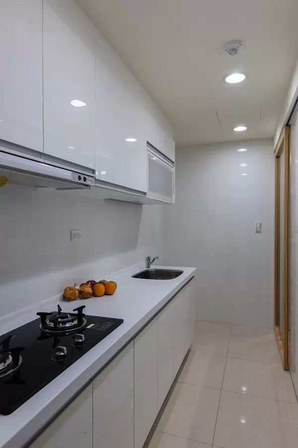 整间厨房空间从房型上来看是狭长形的空间,白色系是最能体现出简约风格的色调,在这一空间中不仅让整间厨房显得整洁,还具有一种视觉扩容感。