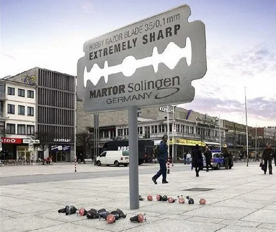 1 \; U3 |- F" f# a9 i$ E; f9 _Martor刮胡刀广告:有点重口味的户外广告。表达意思其实很简单,Martor刮胡刀锋利非常。 9 {2 ?; m1 s: I" _5 ~# |" |1 a