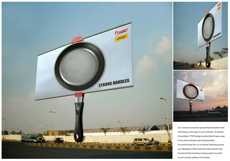 Prestige Omega餐具广告:这个餐具户外广告将平底锅坚固的把手描绘地淋漓尽致。 ( B1 l8 s9 z1 k5 L# ^7 S