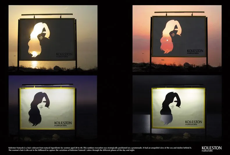Koleston Naturals广告:很聪明的一个户外广告,充分利用了阳光的颜色,来演变头发的颜色变化,做的相当漂亮。