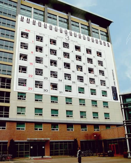 该广告将女生宿舍外墙制作成日历的样子,表明女性们整个三月每天都在使用Axe祛除体味产品,旨在表达产品每天都能让女人焕然一新,以此来宣传他们的品牌形象和产品喜爱度。 : ^# P# _% J$ u4 ?7 x( O