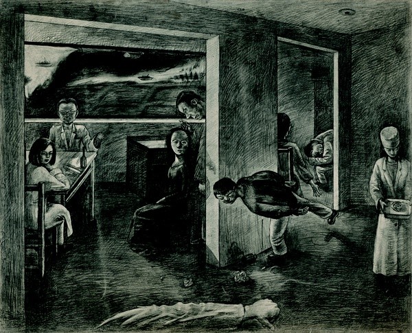 有一天,所有的人都变成了裸体,却犹如中世纪古画一般,瘦削苍白,神情静穆,在颜色暗沉的校园里平静穿行。