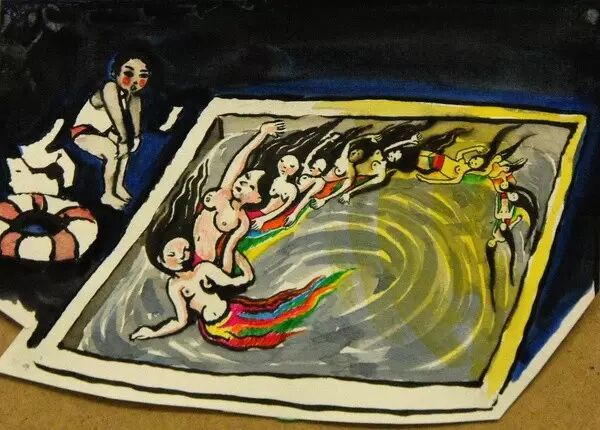为什么会有这个梦呢?过去俱乐部里有很多搞表演的阿姨们,而且其中的电影院总免不了会放一些带着诱惑力形象的电影,还有杂志,封面上总是张扬的美女、美女……在梦里她们组成了一群更加过分的鲜活的形象。 1 d1 ^6 e' P: o! B9 z! {- v( m