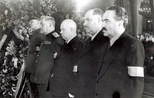 斯大林逝世的当晚,作家西蒙诺夫参与克里姆林宫的苏维埃领导会议,列席会议的是300名最高苏维埃和中央委员会的成员。大家都知道局势的严重,大多数代表早早来到斯维尔德洛夫厅。西蒙诺夫回忆:“我们互相知晓,互相认识,在工作场合相遇过多次。” 8 S$ @4 @' G9 n1 Y0 S