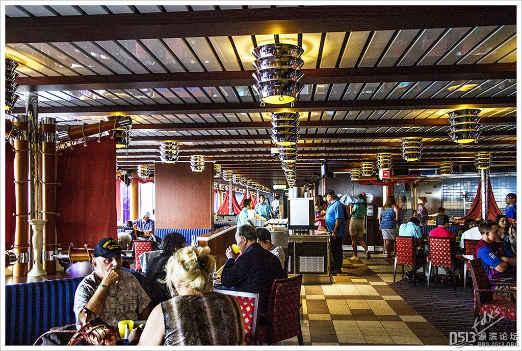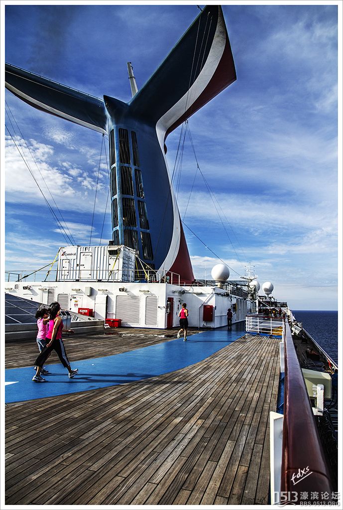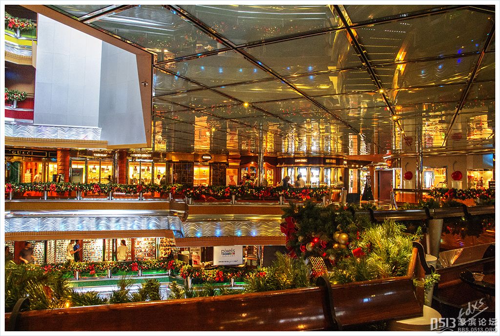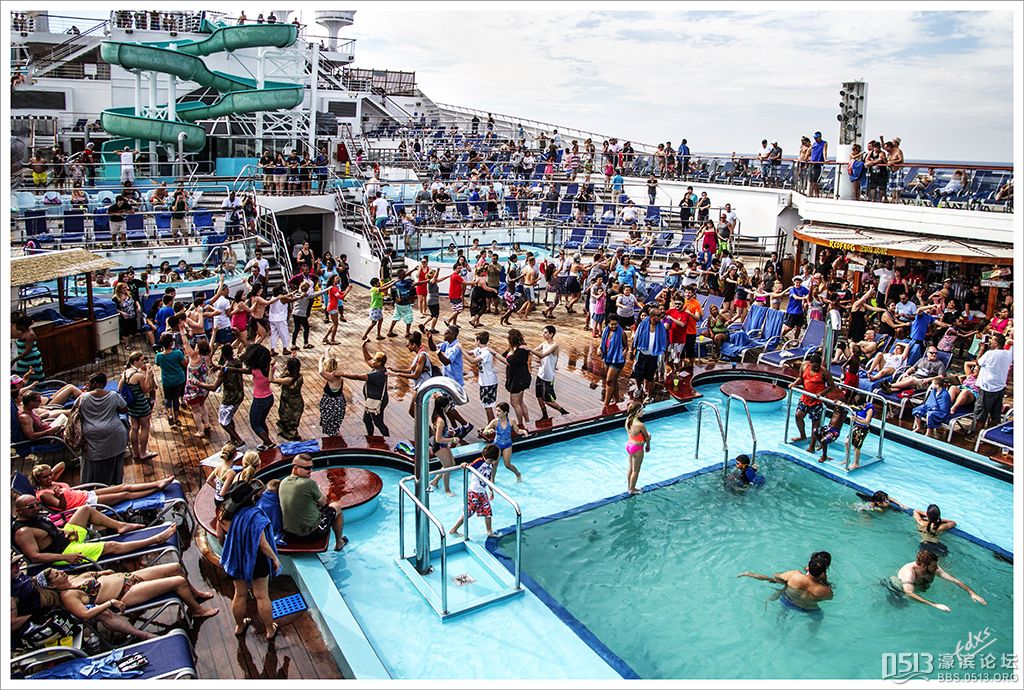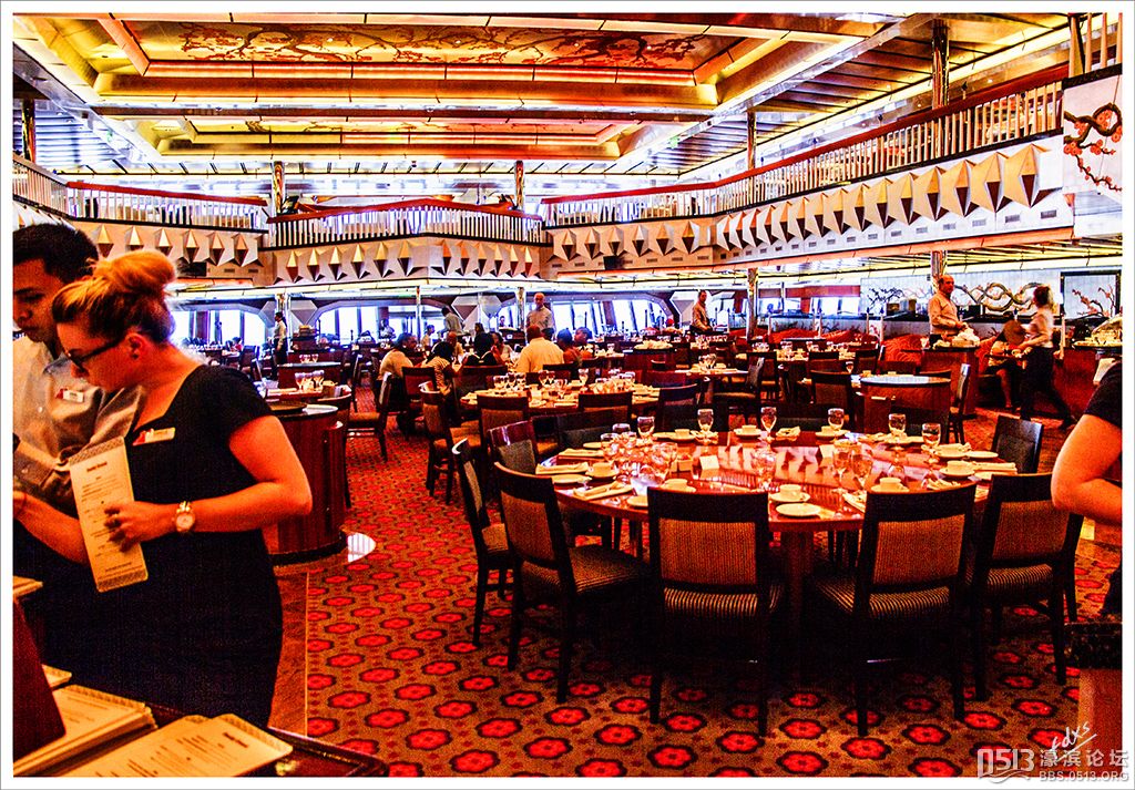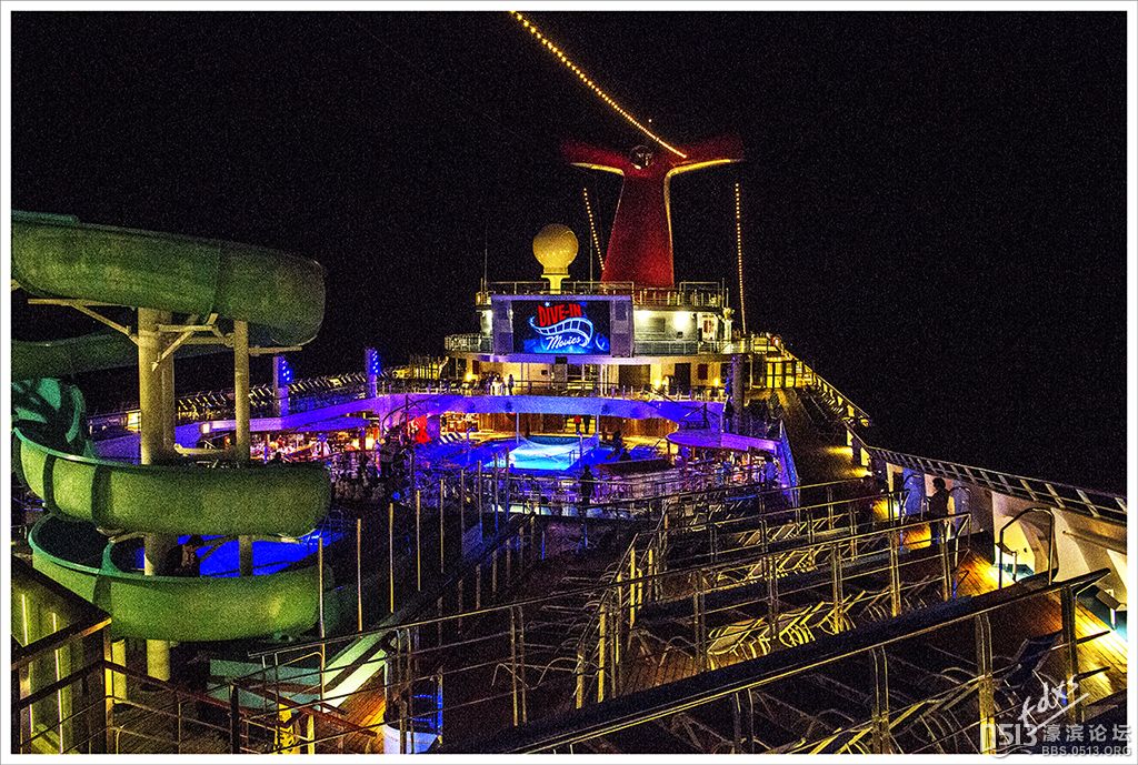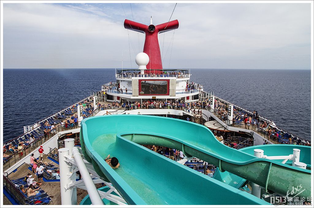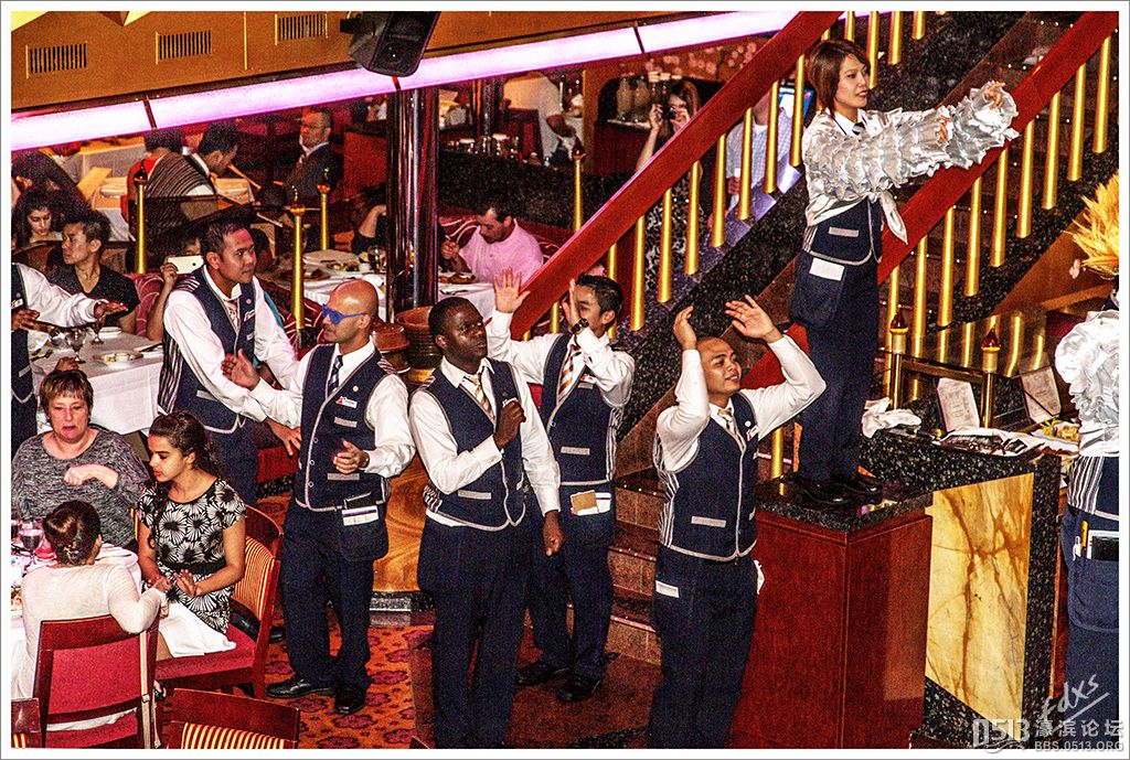 嘉年华光荣号(Carnival Glory Itinerary)邮轮 傍晚时分,嘉年华光荣号(Carnival Glory Itinerary)准时起航了,开始了为期一周的海上旅行。预计邮轮将在海上连续航行一天两夜,第三天的早晨才到达这次旅行的第一站墨西哥的科斯塔玛雅。 我是第一次乘海轮,对船上的一切我都感到新鲜而有趣。 长时间乘船会晕船吗?整天呆在船上会感到寂寞吗?嘉年华光荣号邮轮究竟有多大?穿上有哪些设施?能满足来自世界各地不同肤色不同年龄阶段的人们的不同需求吗? 带着这一个个疑问,开始了认真的考察。 嘉年华光荣号(Carnival Glory)是有史以来最大的客轮之一,以卡那维尔港为母港。嘉年华光荣号排水量11万吨,总长度952英尺,甲板楼层14层,可以容纳2974位乘客,在游轮的1487间客船舱中,大约60%为海景舱。 邮轮设有22间酒吧和酒廊,一个15000平方英尺的健身房,4个泳池、3间餐厅,其中包括一间高级“牛排馆风格”的超级美食会所。嘉年华光荣号是真正的“海上度假村”,可为客人提供范围广泛的用餐、跳舞、娱乐场所以及网吧、慢跑道、排球场、微型高尔夫球场、乒乓球活动场所、理发厅、照相馆、托儿所、会议中心以及购物及时尚精品大街等应有尽有。 嘉年华光荣号的船上用餐选择将包括两个两层的全套服务餐厅,泳池旁边有一个面积很大的两层自助餐厅,供应便利的早餐、中餐、晚餐,此外还有一间糕点店和日式寿司料理吧。 嘉年华荣耀号的每一个活动场所都被标上了吸引您的颜色,就如绿色运动场中的翠绿色的牛排餐厅,蓝色的茶餐厅,黄色赌场俱乐部,火红的勃艮第酒吧。 金碧辉煌的豪华餐厅,不仅可以讨好您挑剔的胃,而且令你想不到的是,常常在餐中会突然响起音乐,所有服务人员会穿上各式服装站在楼梯上、过道里、甚至跳到预备餐台上为你表演欢快的集体舞蹈。 嘉年华光荣号的四、五层有一个不算很小的剧场,每天晚上都有两场精彩的演唱会或其他演出。位于五层中部的赌场规模不是十分大,但不管白天还是夜晚总是座无虚席,吸引了不少爱碰运气的人。船的九层甲板中部,有一个较大的室外海水浴场,在这儿每天聚集的人最多,这儿充满乐趣,不仅可以享受到露天海滨浴场应有的愉悦,还可以自愿即兴参加各种有趣的激情四射的集体游戏等活动。 一天多我除了吃饭和睡觉就是拿着相机在船上到处转,到处看。我转遍了船上14层甲板的所有地方。可以毫不夸张的说,除了严格禁止游客入内的地方我都去过,一般都去过两三遍,拍了一些照片,现在上传与大家分享,希望大家喜欢。当然也欢迎拍砖。 % ]+ \4 D. t# z' ?0 J* P6 f