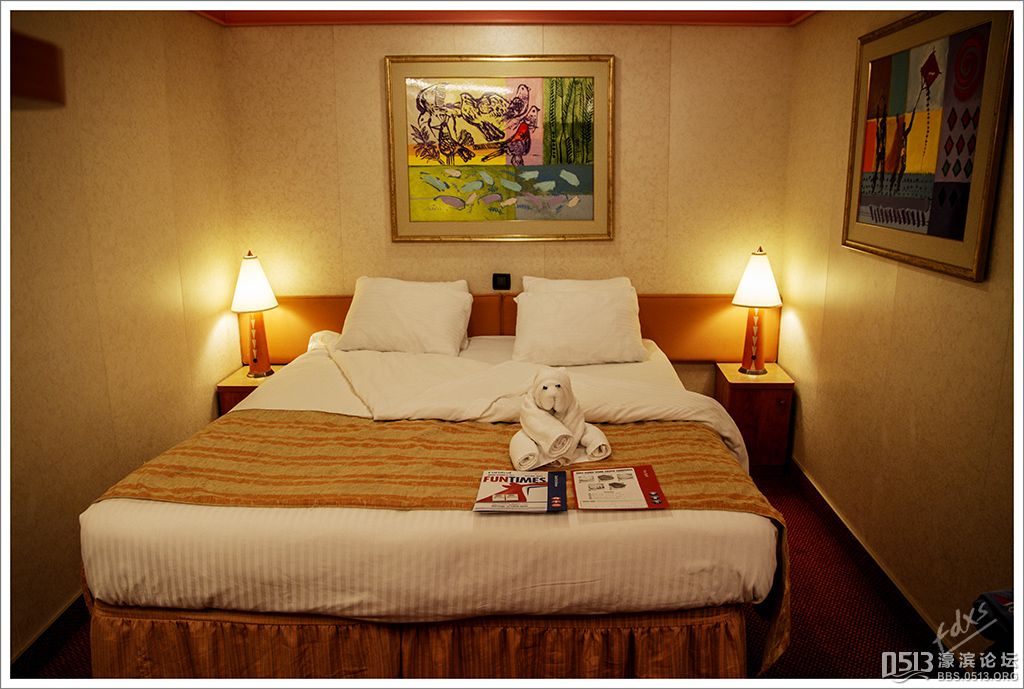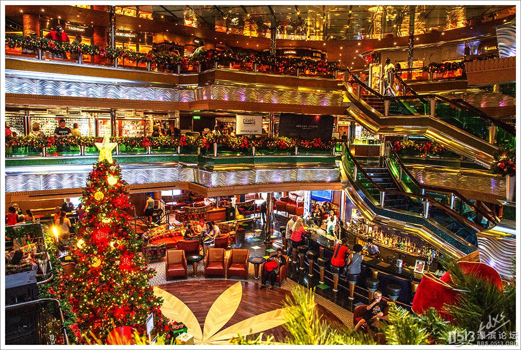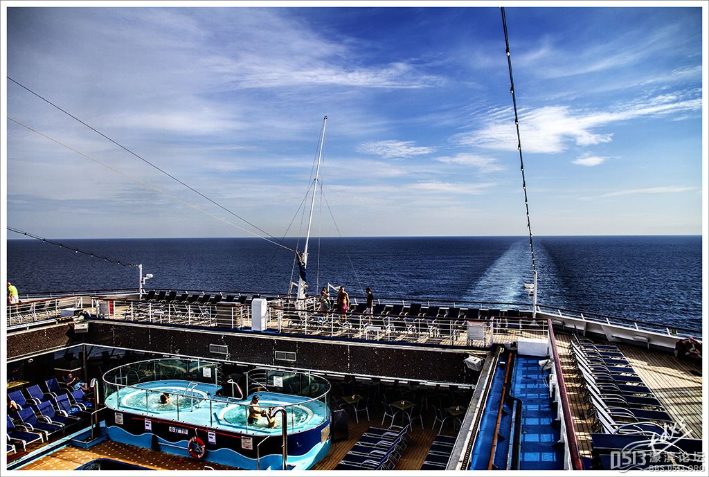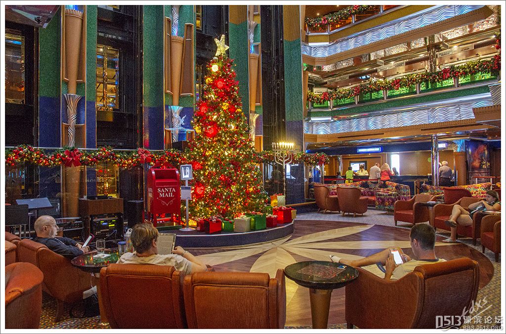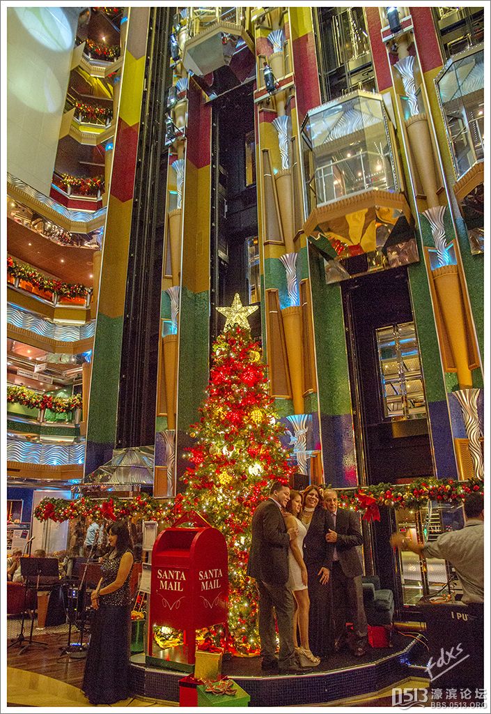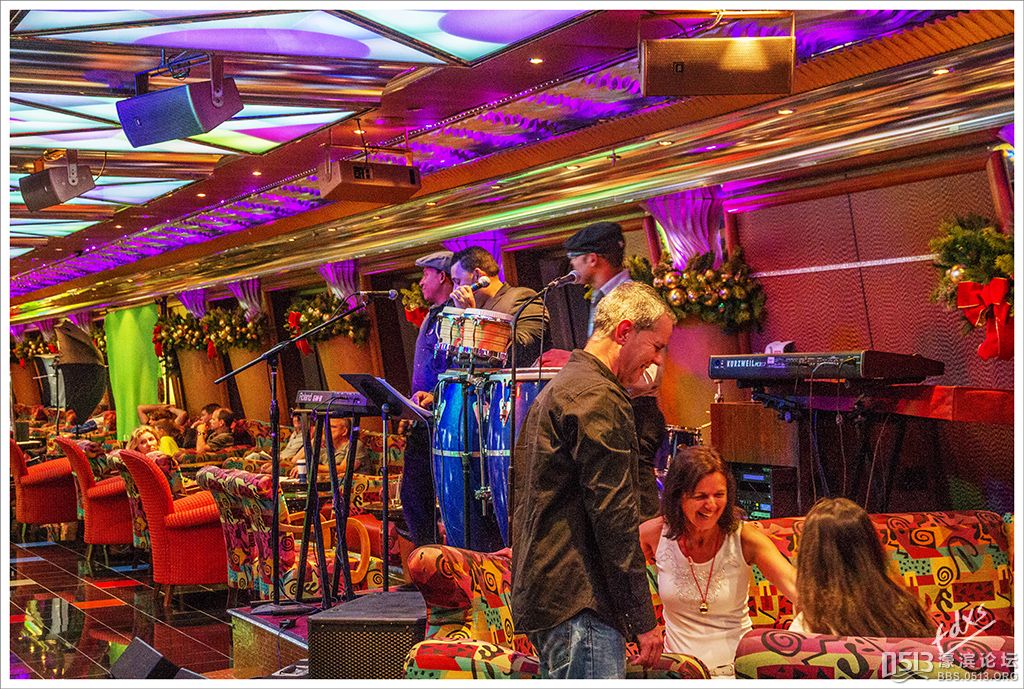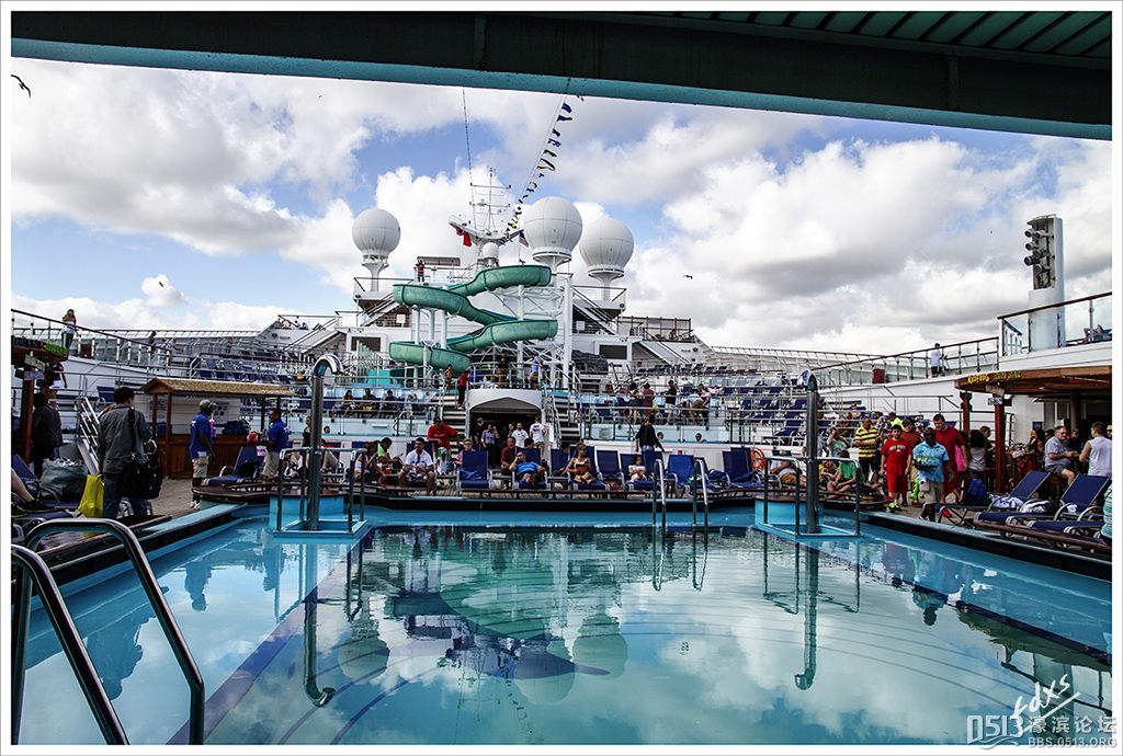 嘉年华光荣号(Carnival Glory Itinerary)邮轮 傍晚时分,嘉年华光荣号(Carnival Glory Itinerary)准时起航了,开始了为期一周的海上旅行。预计邮轮将在海上连续航行一天两夜,第三天的早晨才到达这次旅行的第一站墨西哥的科斯塔玛雅。 我是第一次乘海轮,对船上的一切我都感到新鲜而有趣。 长时间乘船会晕船吗?整天呆在船上会感到寂寞吗?嘉年华光荣号邮轮究竟有多大?穿上有哪些设施?能满足来自世界各地不同肤色不同年龄阶段的人们的不同需求吗? 带着这一个个疑问,开始了认真的考察。 嘉年华光荣号(Carnival Glory)是有史以来最大的客轮之一,以卡那维尔港为母港。嘉年华光荣号排水量11万吨,总长度952英尺,甲板楼层14层,可以容纳2974位乘客,在游轮的1487间客船舱中,大约60%为海景舱。 邮轮设有22间酒吧和酒廊,一个15000平方英尺的健身房,4个泳池、3间餐厅,其中包括一间高级“牛排馆风格”的超级美食会所。嘉年华光荣号是真正的“海上度假村”,可为客人提供范围广泛的用餐、跳舞、娱乐场所以及网吧、慢跑道、排球场、微型高尔夫球场、乒乓球活动场所、理发厅、照相馆、托儿所、会议中心以及购物及时尚精品大街等应有尽有。 嘉年华光荣号的船上用餐选择将包括两个两层的全套服务餐厅,泳池旁边有一个面积很大的两层自助餐厅,供应便利的早餐、中餐、晚餐,此外还有一间糕点店和日式寿司料理吧。 嘉年华荣耀号的每一个活动场所都被标上了吸引您的颜色,就如绿色运动场中的翠绿色的牛排餐厅,蓝色的茶餐厅,黄色赌场俱乐部,火红的勃艮第酒吧。 金碧辉煌的豪华餐厅,不仅可以讨好您挑剔的胃,而且令你想不到的是,常常在餐中会突然响起音乐,所有服务人员会穿上各式服装站在楼梯上、过道里、甚至跳到预备餐台上为你表演欢快的集体舞蹈。 嘉年华光荣号的四、五层有一个不算很小的剧场,每天晚上都有两场精彩的演唱会或其他演出。位于五层中部的赌场规模不是十分大,但不管白天还是夜晚总是座无虚席,吸引了不少爱碰运气的人。船的九层甲板中部,有一个较大的室外海水浴场,在这儿每天聚集的人最多,这儿充满乐趣,不仅可以享受到露天海滨浴场应有的愉悦,还可以自愿即兴参加各种有趣的激情四射的集体游戏等活动。 一天多我除了吃饭和睡觉就是拿着相机在船上到处转,到处看。我转遍了船上14层甲板的所有地方。可以毫不夸张的说,除了严格禁止游客入内的地方我都去过,一般都去过两三遍,拍了一些照片,现在上传与大家分享,希望大家喜欢。当然也欢迎拍砖。 % ]+ \4 D. t# z' ?0 J* P6 f