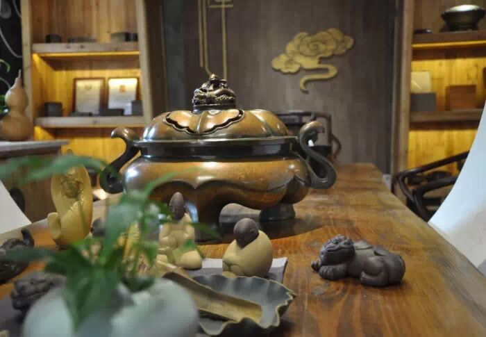 夜读点上案头一炷清香,便有“红袖添香夜读书”的意境; 琴瑟与烟香相伴,又有“绕梁三日沁人心”的雅致。 南通民间工艺家张志伟以宣德炉为蓝本仿制的铜香炉, 深受收藏家喜爱。