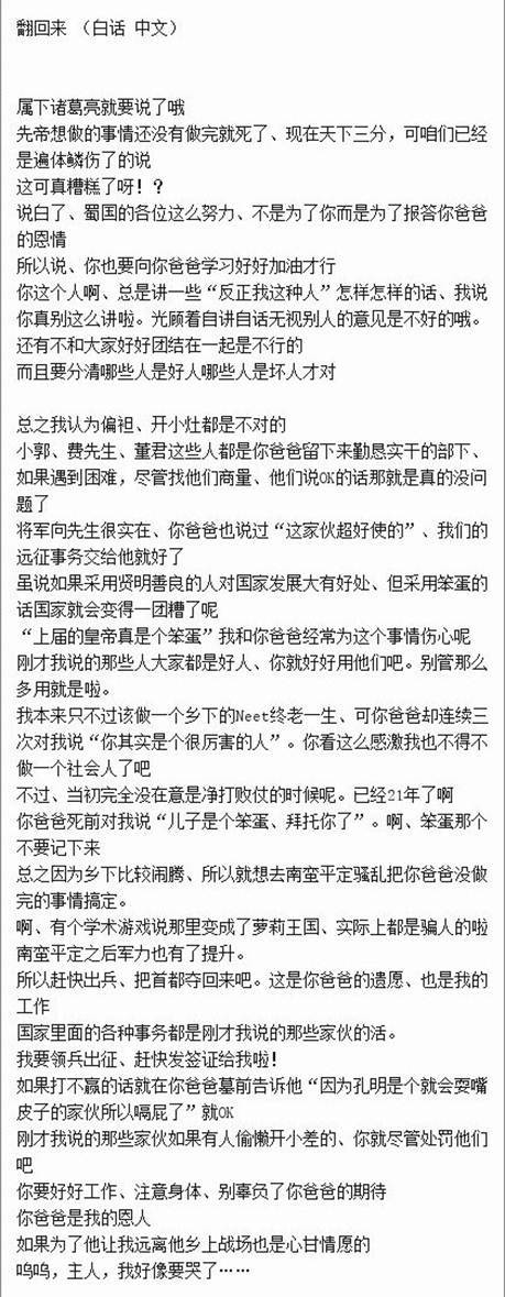把《出师表》翻成日语再翻回来,萌萌的,好羞涩↓