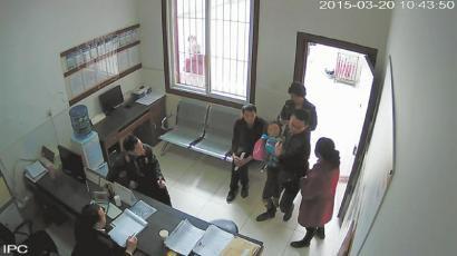 图4:奶奶离开的时候,关上了服务点的门。 她两次追出门,只看见亲人的背影…… 3月26日,幼儿园的老师告诉露露的奶奶刘敏,露露这一天又突然大哭了,不管老师怎么安慰,都停不下来。这已经是露露从蒲江县寿安镇法庭回家的第三天。 原来,法院 20 号判决露露的父母正式离婚,但是离开法院时,两岁的露露被父母留在法庭里。她在法院里待了3天,又被妈妈领走,三天后又被送到法庭,最后,爸爸把她接回了家。奶奶说,露露回家后,就时常突然哭泣,但家里人并不知道原因。 任性的爸爸 不满离婚判决 他把女儿扔法庭上 谈起露露被丢在法院的那天,奶奶刘敏一边抹泪,一边说起儿子朱华的婚姻。 朱华和陈红2011年结婚,第二年生下了露露。但结婚后不久,夫妻感情就出现了裂痕,陈红多次提出离婚,并于2014年10月离家出走,回了邛崃老家,随后再次向法院起诉离婚。 2015年3月20日,蒲江县寿安镇人民法庭判决离婚,露露突然被奶奶从幼儿园接出,随后就被带到了法庭里。当天法院判决露露由父亲朱华抚养,母亲陈红定期支付抚养费。此外,朱华提出的陈红应当支付离家出走期间女儿的抚养、教育等费用共计3600元,也得到了法院的支持。 根据相关法律规定,判决后还有一定的上诉期和生效期,因此判决中的费用没有当庭履行。因为对离婚判决结果不满,朱华把2岁的女儿扔在法庭里,驱车离去。 无辜的孩子 待在法院三天 她总是哭着喊爸爸 “他爸爸从奶奶手里接过娃娃,冲过来就放到我们工作台上,转身就走了。”3月27日上午,寿安镇人民法庭的工作人员回忆起当时一幕,依然唏嘘,“小姑娘一直在哭,跟着就追着爸爸和奶奶跑出服务点。” 记者在法庭的监控视频上看见,背着小书包的露露伸着手追逐着爸爸和奶奶的背影,跑出服务点,刚出门口,又被奶奶再次抱回了法庭服务点。这一次,她没能再追上爸爸和奶奶,因为奶奶离开的时候,关上了服务点的门。 露露没有放弃,再次追了出去,独自站在法庭大门口,看着爸爸和奶奶开车离开。“小姑娘哭了近1个小时,后来还几次跑到门口张望。”寿安法庭庭长杜济江说,最终只能让20多岁的女书记员小郑暂时照顾露露,当天晚上,露露的家人没有来接她回家。 从3月20日晚上到3月22日下午,露露一直由小郑代为照顾。“小姑娘很听话,吃饭也很乖,就是晚上睡觉前老哭。”小郑说,每天晚上睡觉前,露露都会哭着喊爸爸和奶奶。 露露被妈妈接走 法院下达通牒后才终于回爸爸家 20日下午,法庭工作人员给朱华打过多次电话:“他接了一次,说什么时候拿到钱,什么时候把孩子接回去,再打就打不通了”。 22日下午,在法庭多次打电话通知后,陈红来到法庭接走了女儿。“孩子半年没有见到妈妈,感觉很陌生,看了一眼就把头偏向一边。”小郑说。 23日,蒲江县人民法院在多次通知朱华来接女儿未果后,对他下了“最后通牒”。“我们告诉他,他这种行为已经涉嫌遗弃未成年子女,并且扰乱了法庭工作秩序,妨害了民事诉讼,要对他进行严肃处理。”杜济江说,3月24日,朱华终于致电蒲江县人民法院工作人员,并且上门承认错误,接受处罚,法院考虑到他认错态度诚恳,也配合接受处理,最终罚款2000元,并对朱华和刘敏都进行了教育。 随后,陈红在法院的通知下,带着露露再次来到法院,露露终于被朱华接回家了。 对话 3月27日,记者联系上了露露的父母。对于女儿被扔在法院这件事,两人都心怀愧疚。 父亲:心怀愧疚 3天都在想她 露露爸爸说:“其实这三天,我都很想女儿,还曾悄悄托人去法庭看过女儿。”他知道自己不对,但那场失败的婚姻,让他被愤怒冲昏了头脑,而自己经济情况不好,担心无法抚养女儿。如今,他也想通了,只想好好照顾女儿。 母亲:想要抚养权但没能力 露露妈妈说,女儿被扔在法庭的当天,她一开始并不知情,直到接到法院的电话,她才得知这件事。但因为工作忙抽不开身,所以只好到了第三天才去接走女儿。虽然自己也想要女儿的抚养权,但“没有这个能力”。