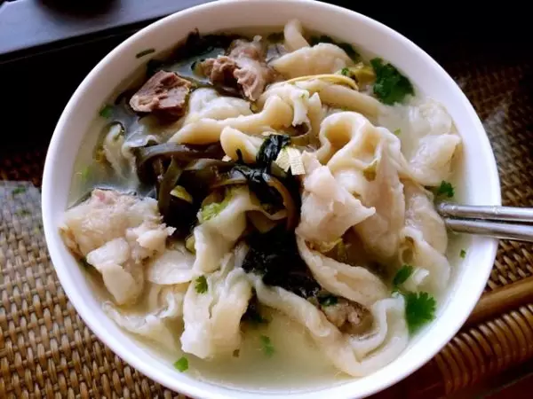 猪肉片、冬笋片和雪菜,不仅吃起来有软硬之分,甚至色泽上也有深浅之分,这大概也是江南人崇尚食物精致的一个绝好例子。片儿川的汤,也和北方的清汤有很大的不同。南方人几乎都相信汤能进补,而且越是浓汤越佳,而一碗正宗的片儿川,它用的汤也必须是浓汤。