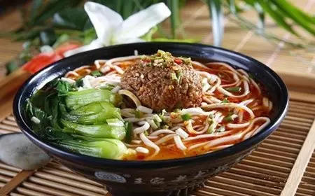 9、四川担担面 关于担担面,因最早由挑着担子的小贩沿街叫卖而得名。担担面的出名,却在于它的调味和独特的面臊。