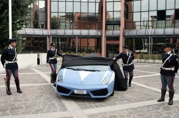 意大利: 意大利的依维柯装甲警车与兰博基尼Gallardo警车,这台兰博基尼Gallardo警车是2010年2月意大利警察建立152周年纪念日由厂家捐赠给警察部队的。